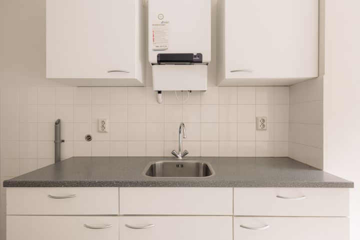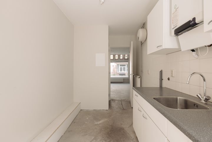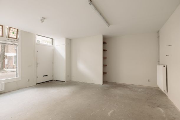 De ruimte, gelegen op de begane grond, wordt in casco staat opgeleverd en is voorzien van een pantry, toilet en cv-installatie met radiatoren. Een opvallend detail zijn de glas-in-lood ramen. Dankzij de praktische indeling leent de ruimte zich uitstekend voor een kleinschalig kantoor of praktijk met een professionele uitstraling.