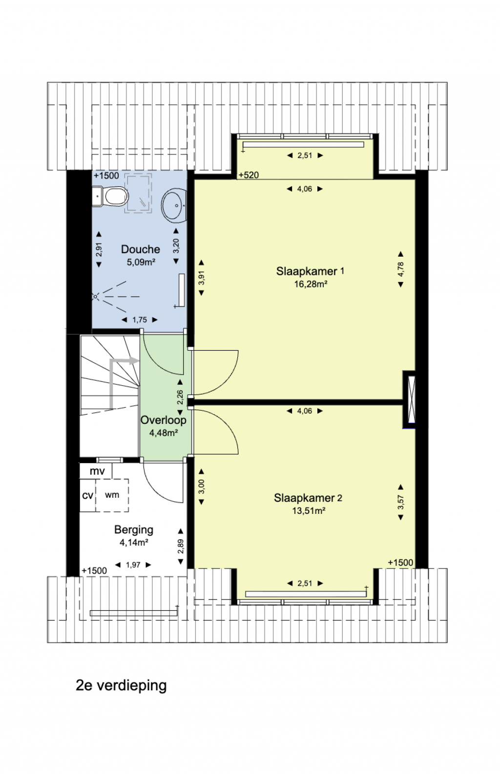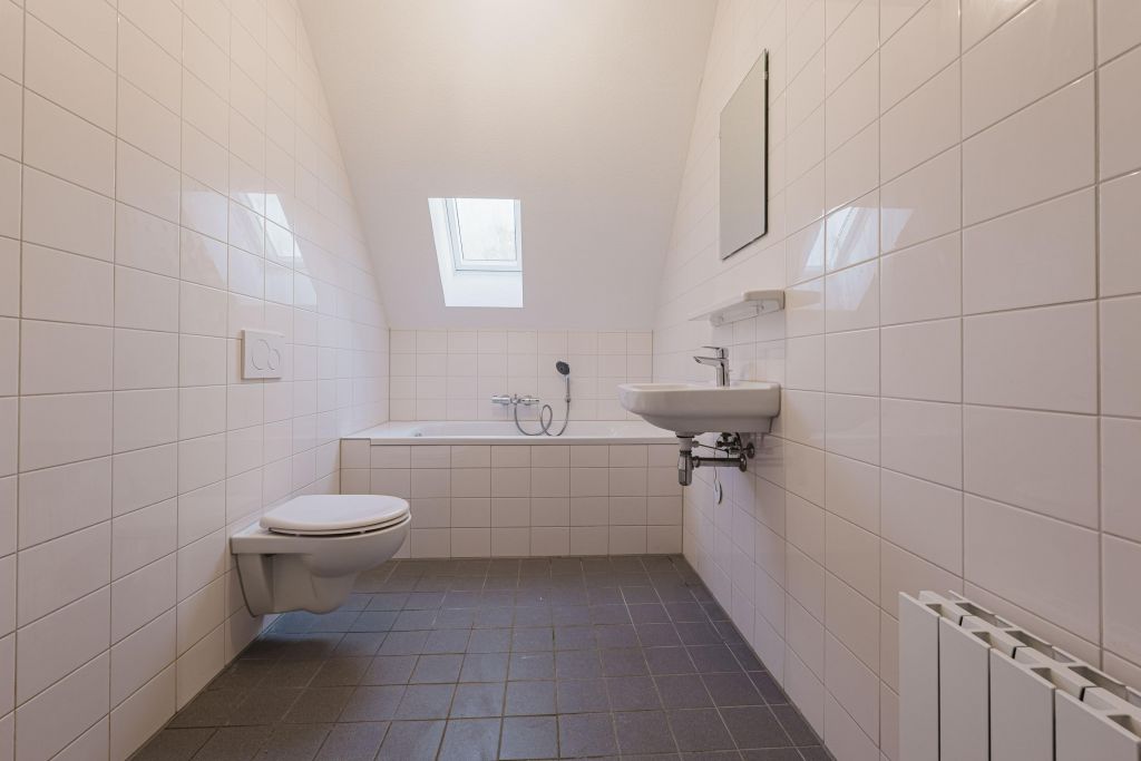 Tweede verdieping: overloop, aan de achterzijde een slaapkamer, de badkamer is voorzien van een douche, een bad, een wastafel en een tweede toilet, een slaapkamer en inpandige berging aan de voorzijde.