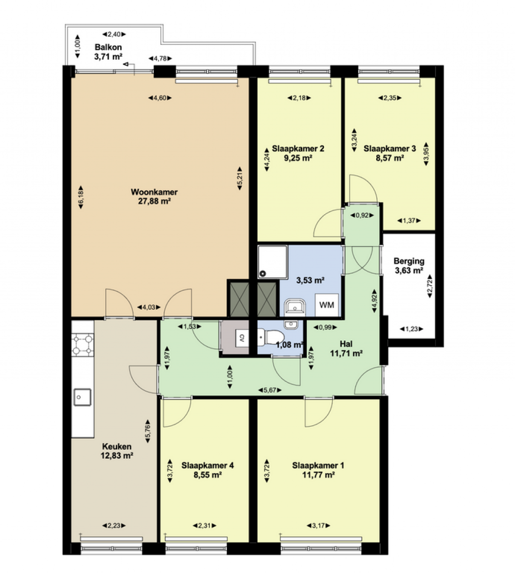 Royaal 5-kamer appartement van ca. 106m2 met een balkon/terras gelegen op de bel-etage.