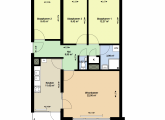 Entree op de tweede verdieping, aan de voorzijde de woonkamer, een dichte keuken voorzien van een standaard keukenblok en toegang tot het balkon, een separaat toilet met een fonteintje, de badkamer is voorzien van een douche en een wastafel, drie slaapkamers aan de achterzijde.