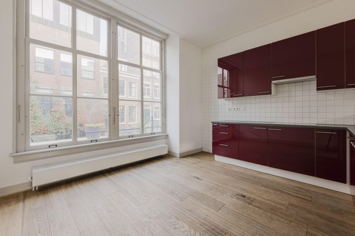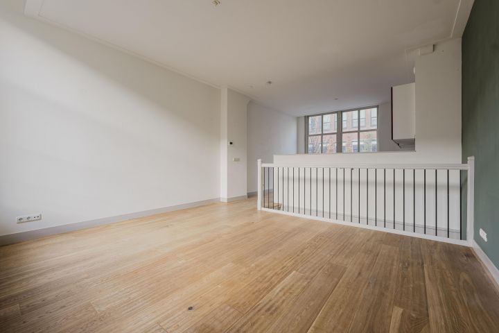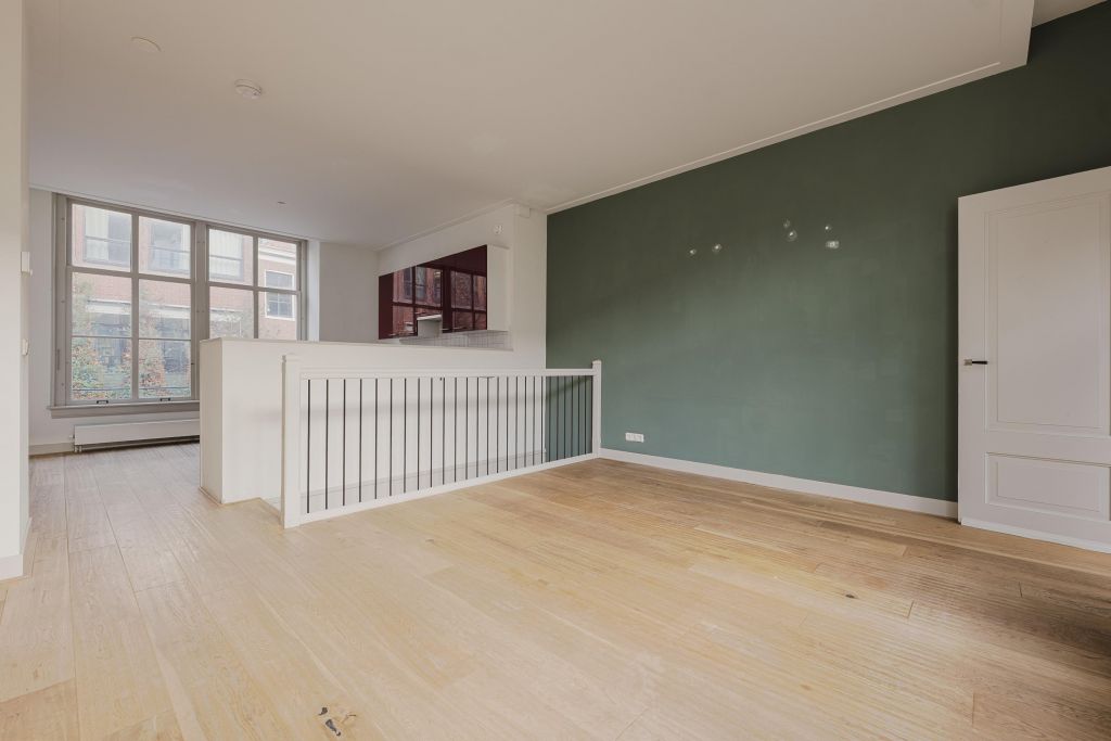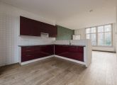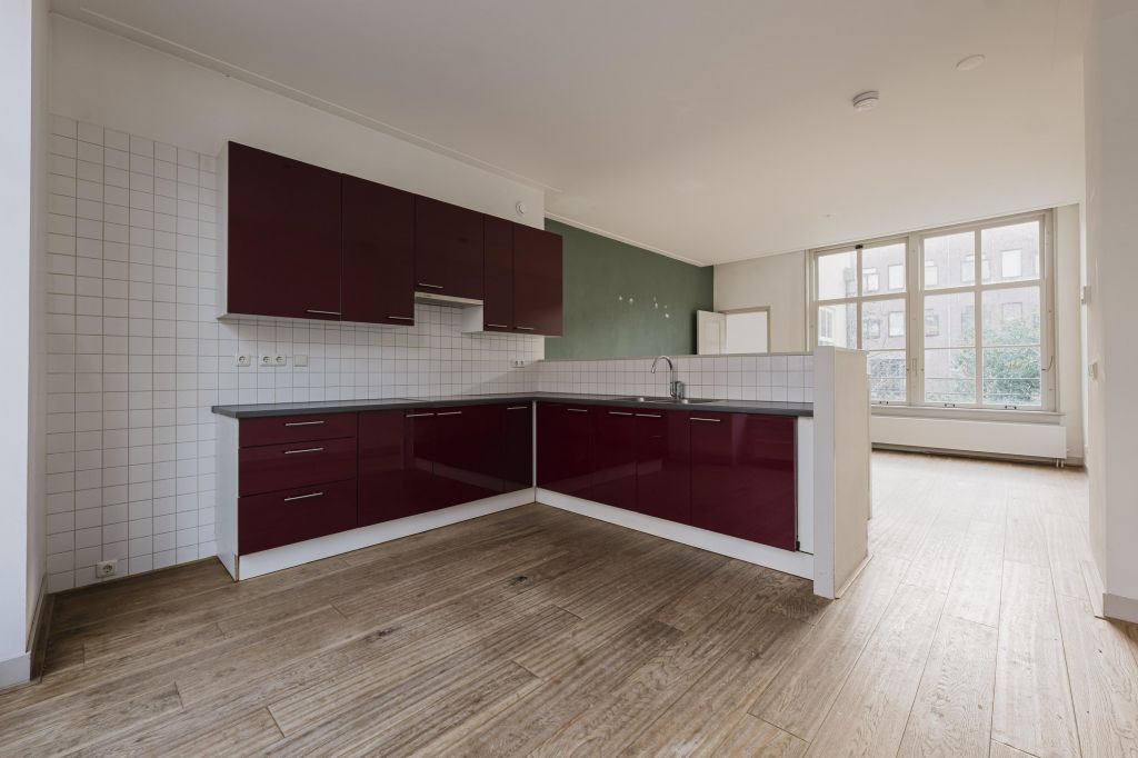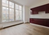 Eerste verdieping; aan de voorzijde de woonkeuken voorzien van diverse inbouwapparatuur en de achterzijde de woonkamer en een slaapkamer.