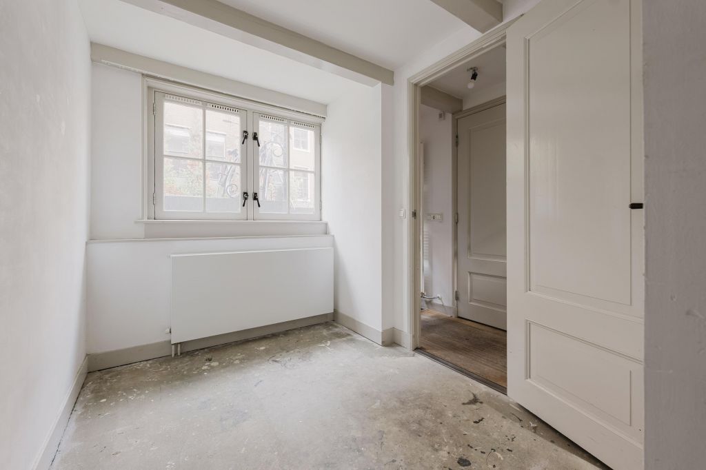Entree op de begane grond; hal, een slaapkamer aan de voorzijde, een separaat toilet met een fonteintje, de badkamer is voorzien van een douche en een wastafel, aan de achterzijde een slaapkamer met toegang tot de ruime tuin, gelegen op het zuidwesten, via de interne trap naar de eerste verdieping.