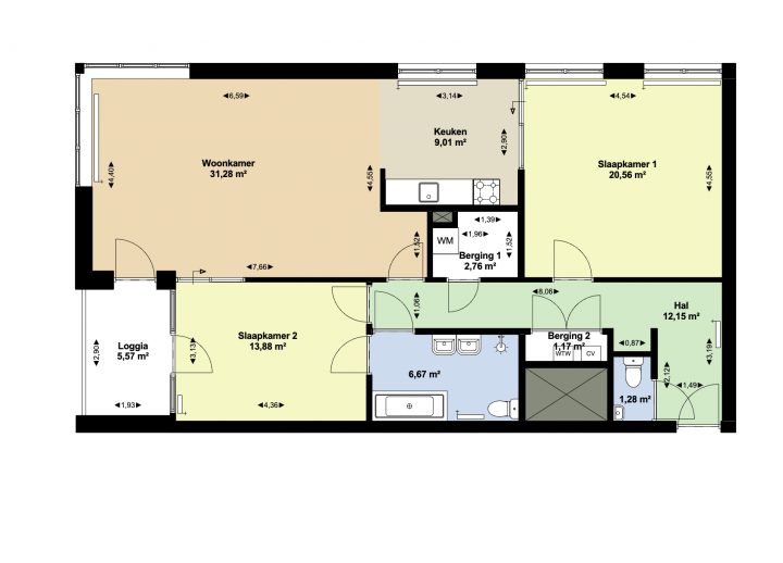 Een royaal 3-kamer appartement op de tweede verdieping van circa 105m2.