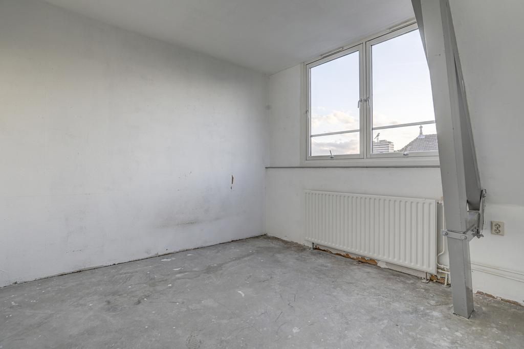 Entree op de derde verdieping, dichte keuken voorzien van een standaard keukenblok, ruime woonkamer aan de voorzijde met toegang tot het dakterras, separaat toilet met een fonteintje en een slaapkamer aan de achterzijde, via de interne trap naar de vierde verdieping.