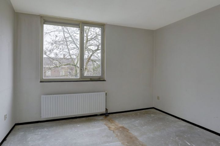 Via het gemeenschappelijk trappenhuis naar de derde verdieping; entree, de woonkamer aan de voorzijde met toegang tot het balkon, dichte keuken voorzien van een standaard keukenblok, een slaapkamer, een separaat toilet met een fonteintje, de badkamer is voorzien van een douche en een wastafel twee slaapkamers aan de achterzijde.