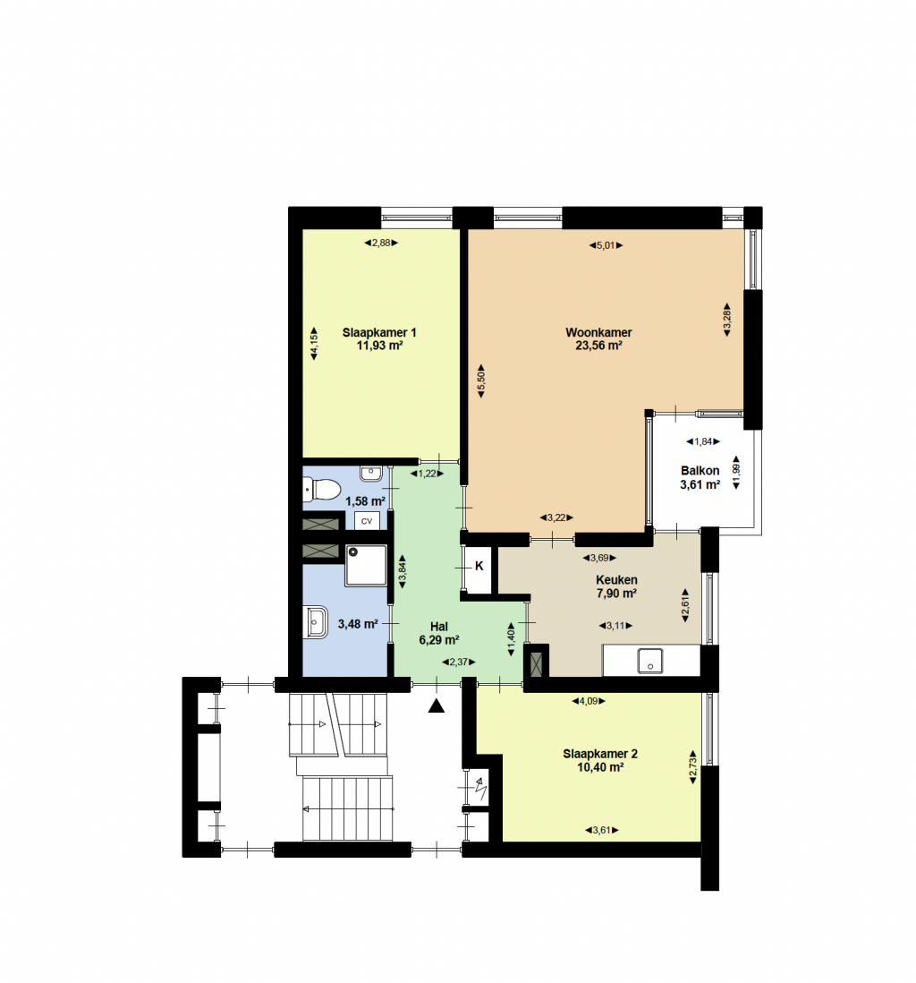 - Alle maten op de plattegrond zijn indicatief;