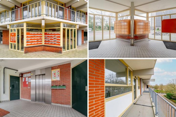 Algemene toegang, met toegang tot lift en trappenhuis naar de 2e verdieping. Eigen entree op de 2e verdieping geeft je toegang tot de woning. Vanuit de gang heb je toegang tot: de woonkamer met open keuken en balkon gelegen op het zuidoosten, de slaapkamer en de 2e hal met toegang tot het separate toilet met fonteintje, de badkamer en 1 slaapkamer gelegen aan de voorzijde.