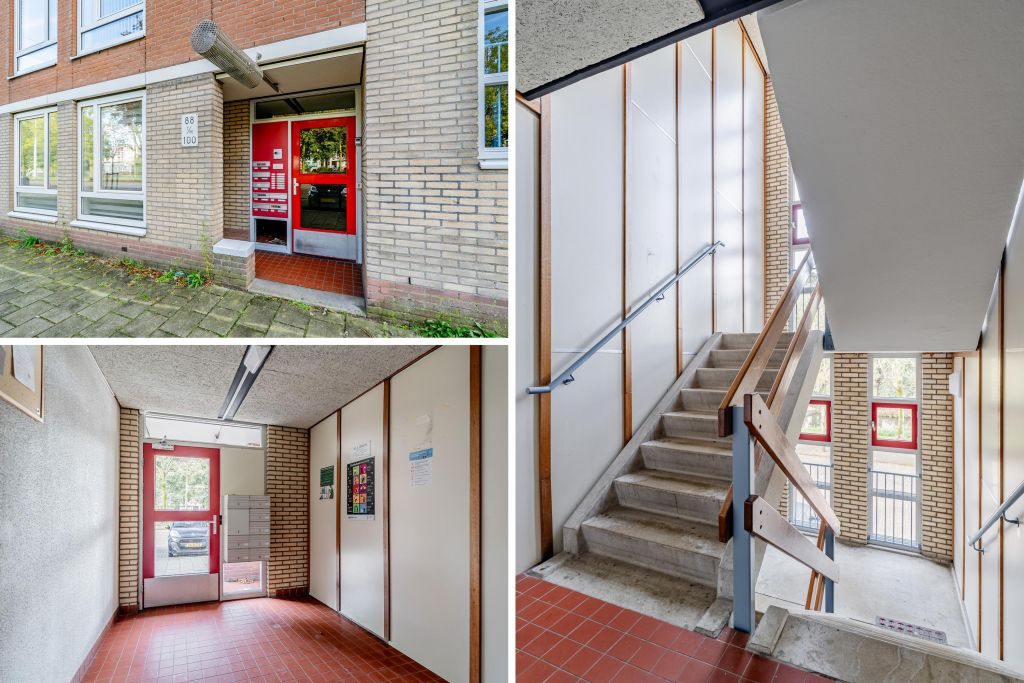 Gezamenlijke entree met trappenhuis, op de tweede verdieping, via het portiek toegang tot woning.