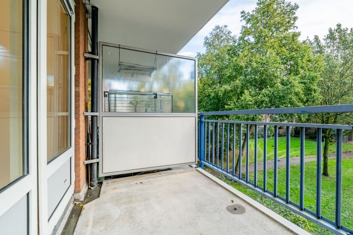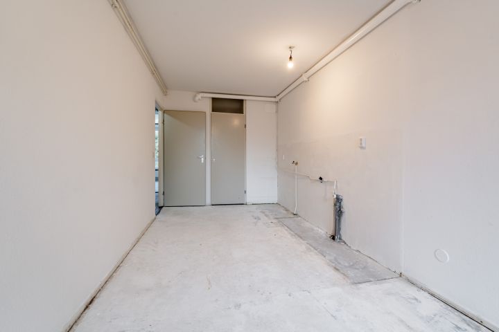 Entrance to the apartment, hallway with meter cupboard, separate toilet, and access to the other rooms. The living room is located at the front and is very bright. Two bedrooms are located at the rear, as is the kitchen, which provides access to the southeast-facing balcony. The kitchen is fully equipped, allowing you to create the kitchen of your dreams. The central heating boiler (Nefit from PM) is located in a separate cupboard.