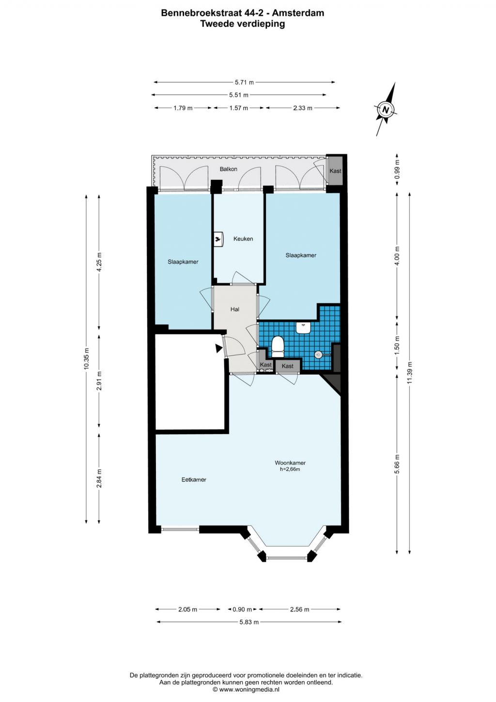 - De plattegrond betreft een indicatie van het appartement. Aan de opgegeven maten kunnen geen rechten worden ontleend.