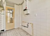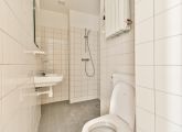 Via het gemeenschappelijk trappenhuis naar de tweede verdieping; entree, aan de voorzijde de L-vormige woonkamer, de badkamer is voorzien van een douche, een wastafel en een toilet, de dichte keuken (keuken dient nog geplaatst te worden door de koper) en twee slaapkamers aan de achterzijde met toegang tot het balkon gelegen op het noorden.