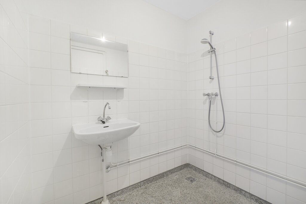 - Hall with access to closet, bathroom with shower, sink and washing machine connection.