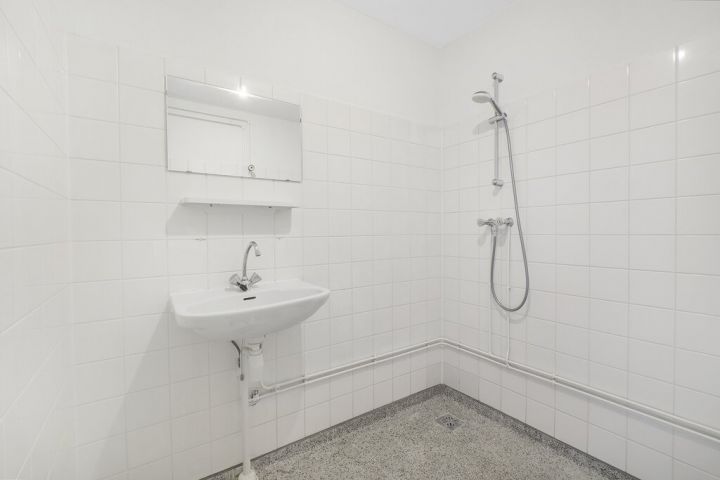 - Hal met toegang tot vaste kast, badkamer voorzien van douche, wastafel en wasmachine aansluiting.