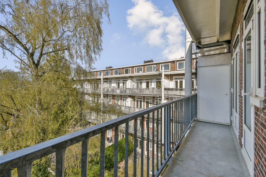 Via het gemeenschappelijk trappenhuis naar de derde verdieping; entree, de woonkamer is gelegen aan de voorzijde, een separaat toilet met een fonteintje, dichte keuken met toegang tot het balkon op het westen, twee slaapkamers gelegen aan de achterzijde, waarvan één met toegang tot de de badkamer voorzien van een douche en een wastafel en een slaapkamer gelegen aan de voorzijde.