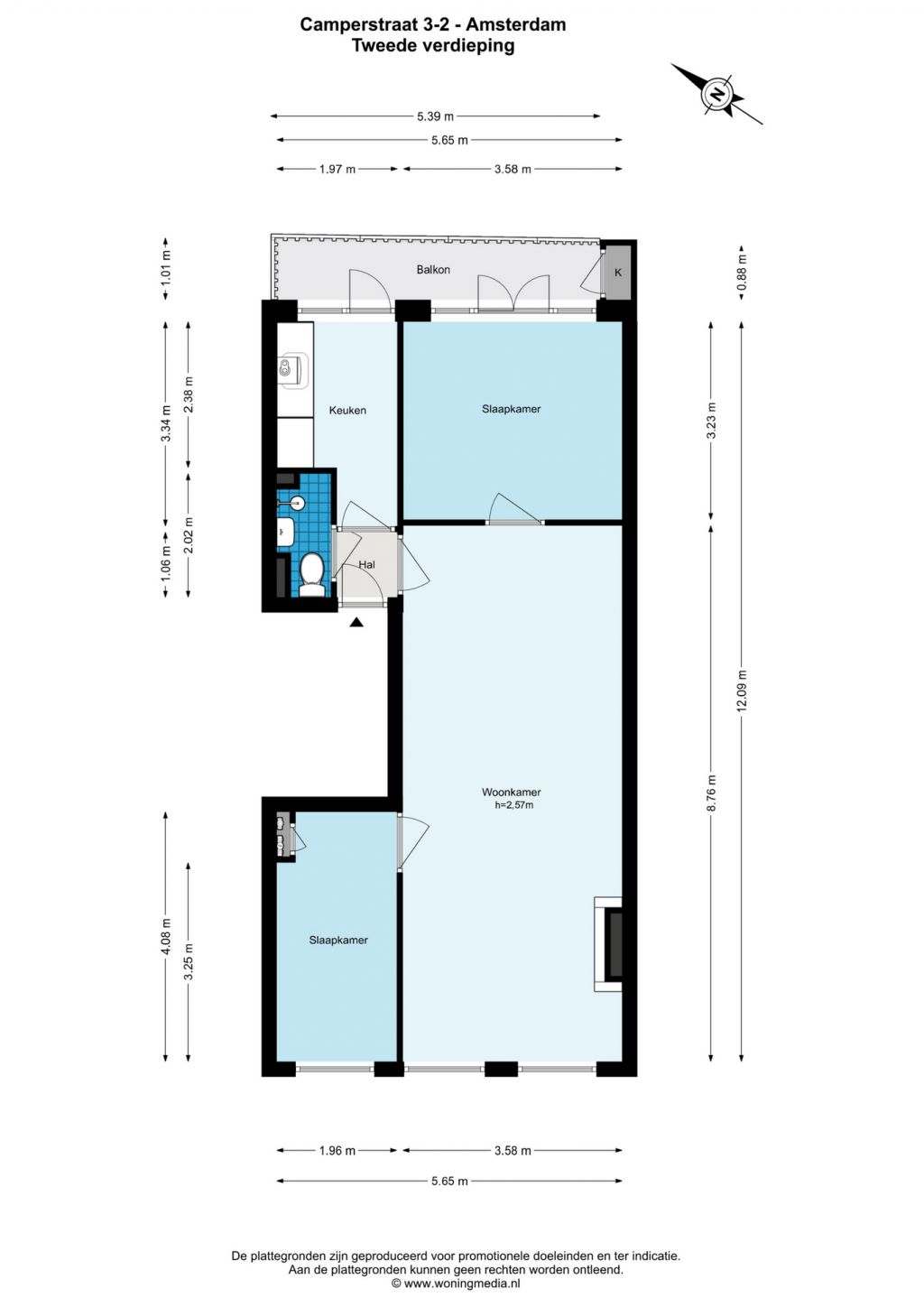 - De plattegrond betreft een indicatie van het appartement. Aan de opgegeven maten kunnen geen rechten worden ontleend.