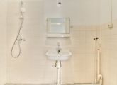 - Bathroom with washbasin, shower, and washing machine connection;
