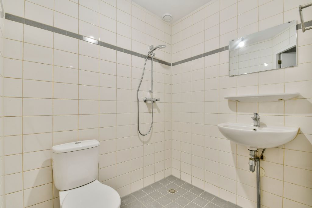 - Bathroom with shower, washbasin, and toilet;