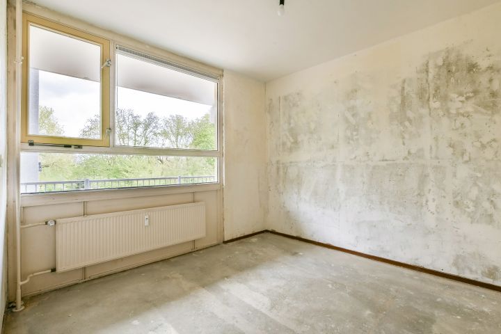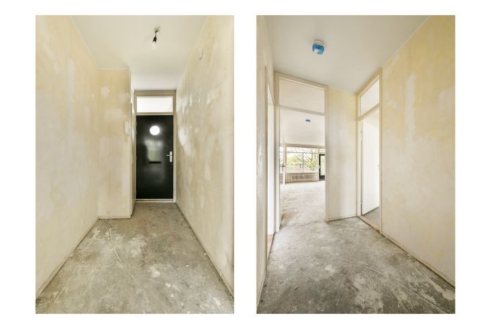 Entree via de gezamenlijke portiek, met de lift bereik je de woning op de tweede etage. Binnenkomst in de hal, vanuit de hal heb je toegang tot de eerste slaapkamer en de ruime woonkamer met open keuken. De woonkamer heeft aan de achterzijde een flinke raampartij met een deur naar het brede balkon (11m2!) waar je ruimte genoeg hebt voor een gezellige tuinset. Hier kan je heerlijk van de zon genieten met vrij uitzicht op het groen. In het midden van de woning is een hal gesitueerd die toegang geeft tot de grote slaapkamer aan de achterzijde van de woning, het toilet en badkamer welke ook nog naar eigen wens geplaatst moet worden. De ‘kleinere’ slaapkamer is aan de galerij gelegen en heeft een handige bergkast.