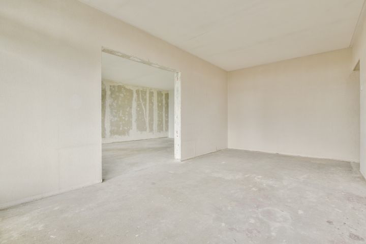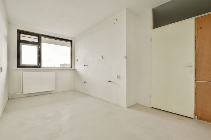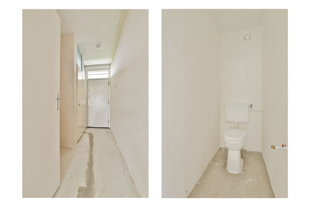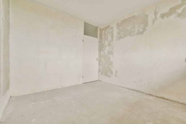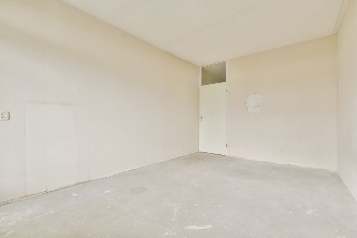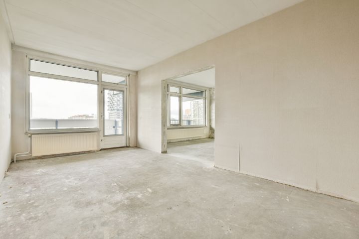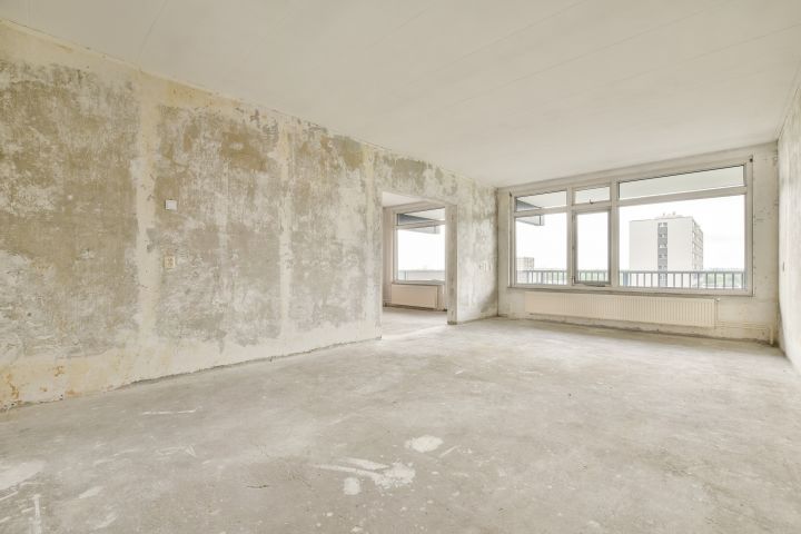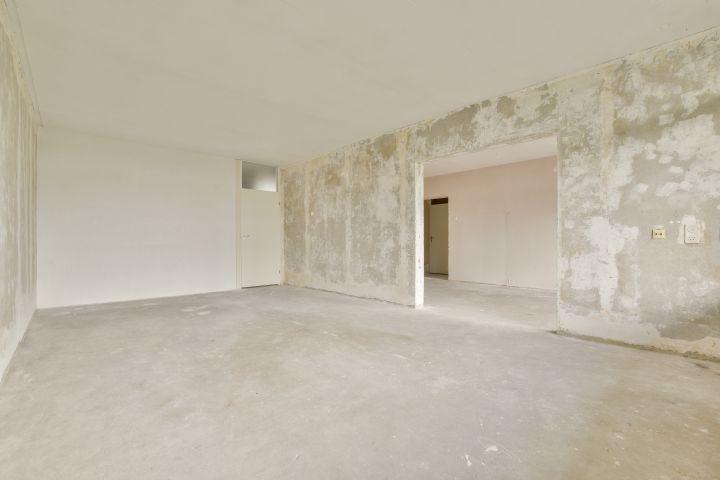 - Woonkamer met toegang tot de gesloten keuken (casco) aan de voorzijde;