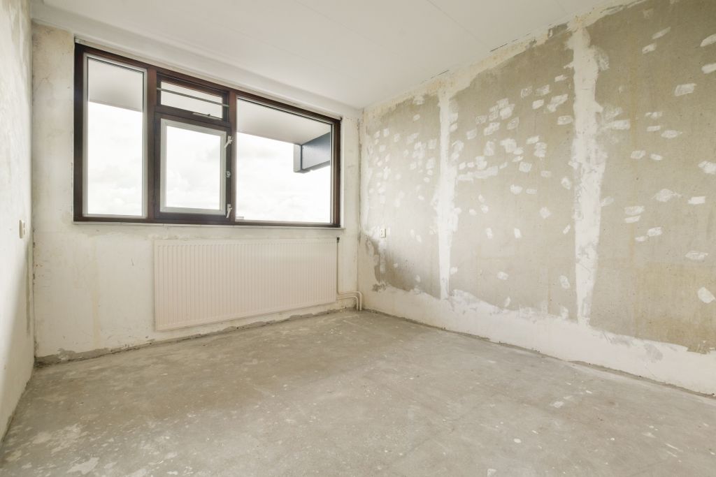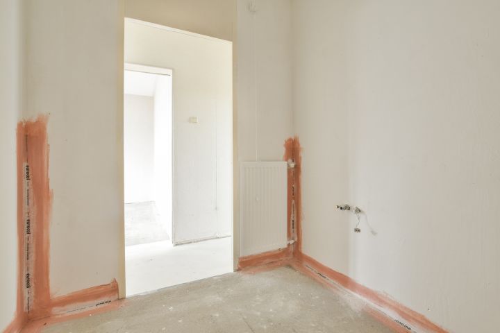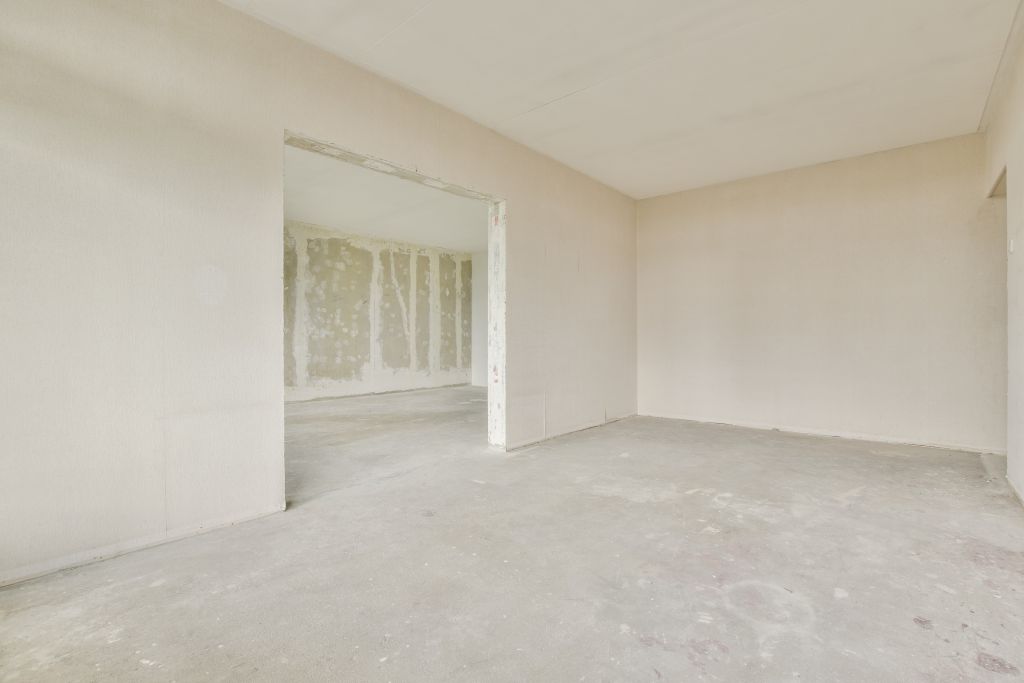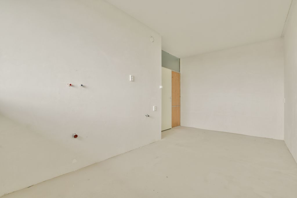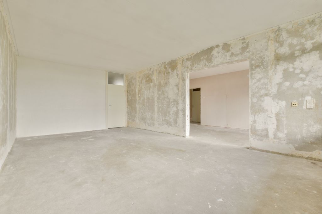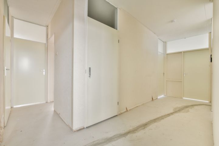 - Woonkamer met toegang tot de gesloten keuken (casco) aan de voorzijde;