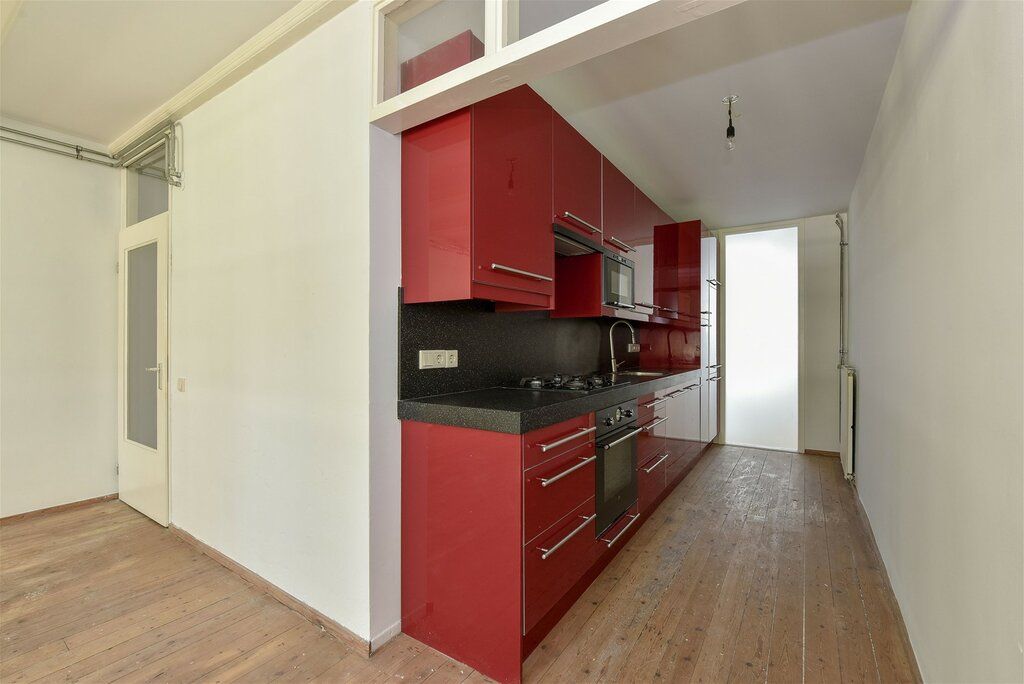 Deze voormalige sociale huurwoning is direct te betrekken en nog volledig naar eigen inzicht af te werken. Via het gemeenschappelijke trappenhuis is de woning op de eerste verdieping te bereiken. Hal met toegang tot alle vertrekken. Aan de voorzijde is de riante woonkamer met open keuken gelegen. De keuken is voorzien van al de benodigde inbouwapparatuur. De ruime slaapkamer is gelegen aan de rustige achterzijde van de woning. Badkamer voorzien van inloopdouche, wastafel en wasmachineaansluiting en er is een separaat toilet. In de onderbouw is nog een privéberging gelegen.