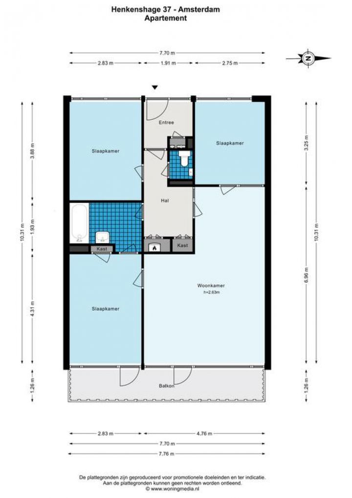 - De plattegrond betreft een indicatie van het appartement. Aan de opgegeven maten kunnen geen rechten worden ontleend.