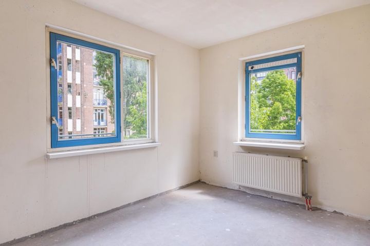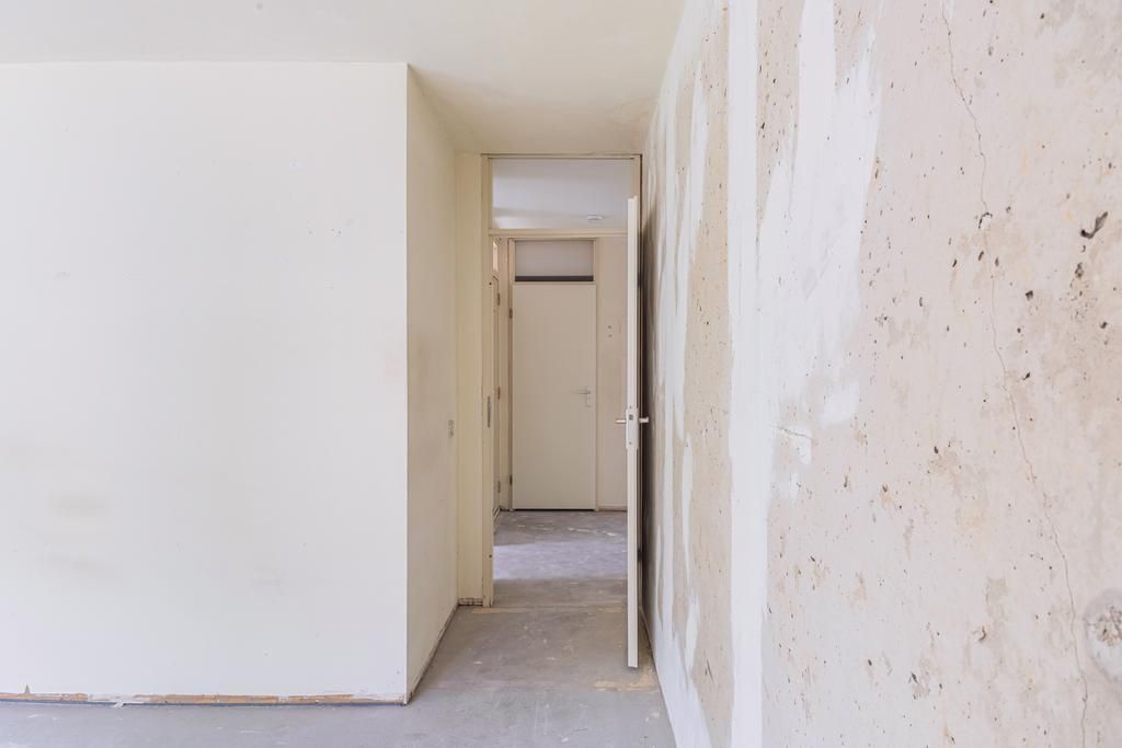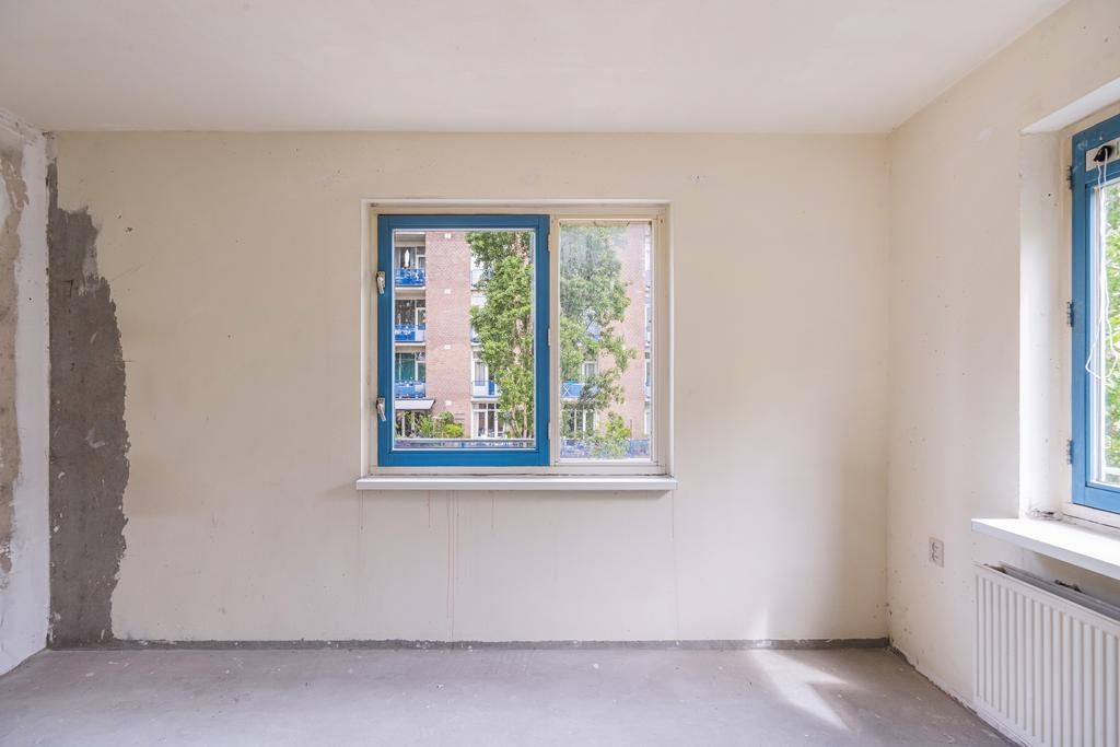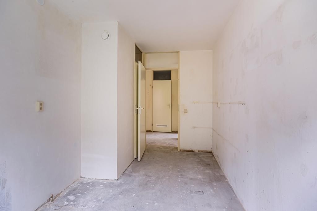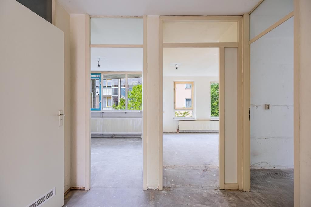 Tweede verdieping; hal, toilet met een fonteintje, badkamer (dient nog geplaatst te worden door de koper), 2 slaapkamers aan de achterzijde, keuken (dient nog geplaatst te worden door de koper) gelegen in het midden van de woning, woonkamer met toegang tot een balkon, balkon gelegen op het westen en de derde slaapkamer aan de voorzijde.