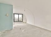 You enter the hall with meter cupboard via your own entrance. By taking the stairs you reach the first floor where the bedroom and bathroom are positioned. The bathroom has a walk-in shower, sink and washing machine connection. The closed kitchen can then be found on the second floor with a kitchen unit and the separate toilet with fountain on the landing. The spacious living room can be reached via the stairs on the last floor, which has large windows with sliding doors to the sunny roof terrace.