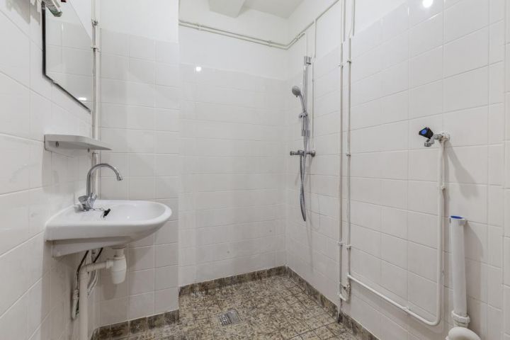 - Badkamer met douche, wastafel en wasmachine aansluiting;