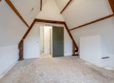 Separaat toilet met fonteintje en een handige trapkast met wasmachine aansluiting. De woonkamer is voorzien van vele raampartijen en geeft toegang tot de open keuken. Deze is eenvoudig van opzet en kan volledig naar eigen wens worden gemoderniseerd.