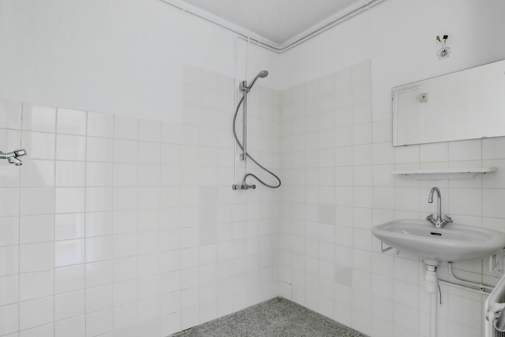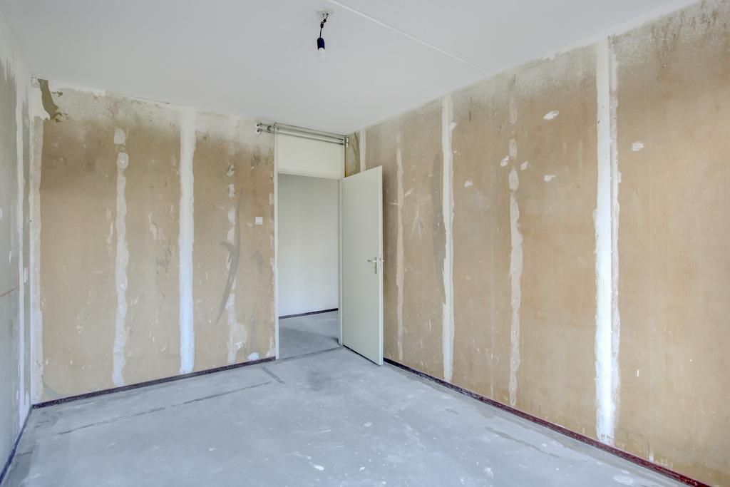 1e verdieping: entree, hal, bergruimte, de badkamer met een douche, wastafel en de wasmachine aansluiting, separaat toilet met fonteintje, aan de voorzijde de woonkamer, een dichte keuken voorzien van een standaarde keukenblok en twee slaapkamers aan de achterzijde en een ruim dakterras.