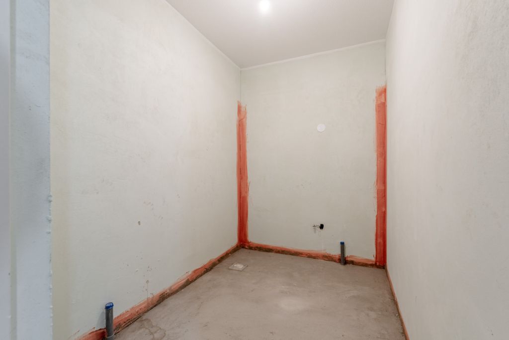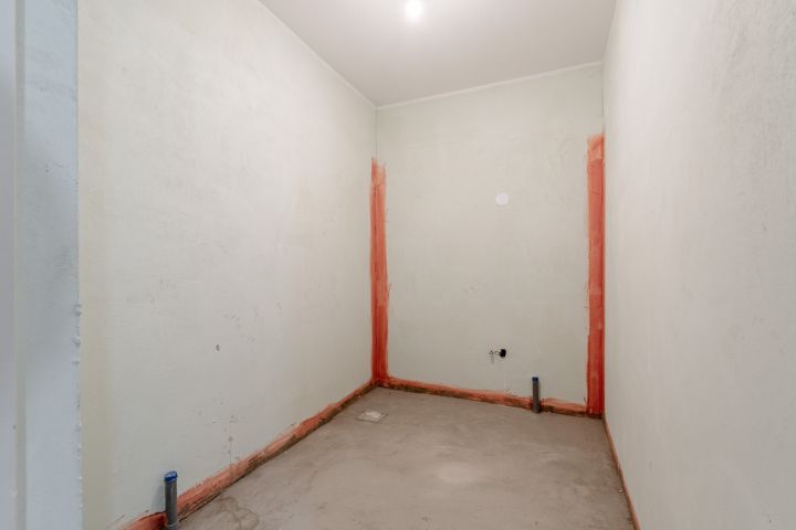 A private storage unit is located on the ground floor. The apartment can be finished to your own specifications; the flooring still needs to be laid.