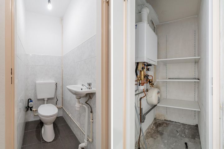 Shared entrance with staircase. On the first floor, access to the apartment and the meter cupboard is via the porch. You enter into the hallway with access to the separate toilet, storage units, and bathroom. The bathroom is equipped with all plumbing fixtures, allowing you to create the bathroom of your dreams. From the hallway, you enter a very bright living room and a spacious bedroom. The living room overlooks Le Mairegracht canal and also provides access to the closed kitchen, which features a simple unit with wall units. The kitchen also provides access to the south-facing balcony. The spacious bedroom is located at the rear of the building and includes a cupboard housing the central heating boiler (Intergas, 2020).