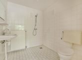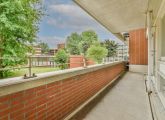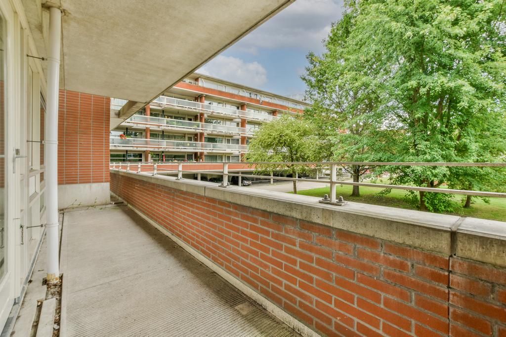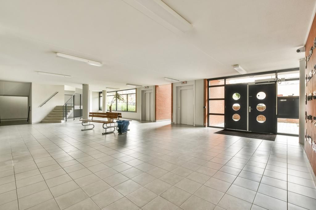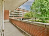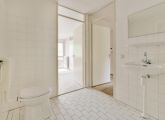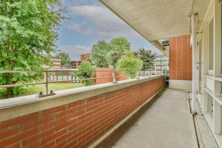 Via de lift kom je op de brede galerij op de eerste verdieping. De ruime entree biedt toegang tot alle vertrekken van de woning, hier zou ook nog een extra kamer gecreëerd kunnen worden. De woonkamer is ruim en ligt aan de balkonzijde, het ruime balkon van circa 9 m² is gericht op het oosten. De keuken is aan twee kanten te betreden en is voorzien van alle nodige aansluitingen. Beide slaapkamers zijn erg ruim en tussenin bevindt zich de badkamer met een inloopdouche, wastafel en een tweede toilet. In de hal is naast het separaat toilet ook een wasruimte aanwezig. De berging bevindt zich in onderbouw.