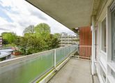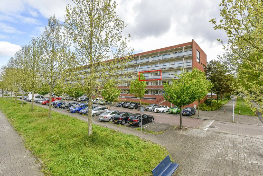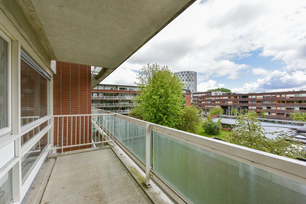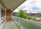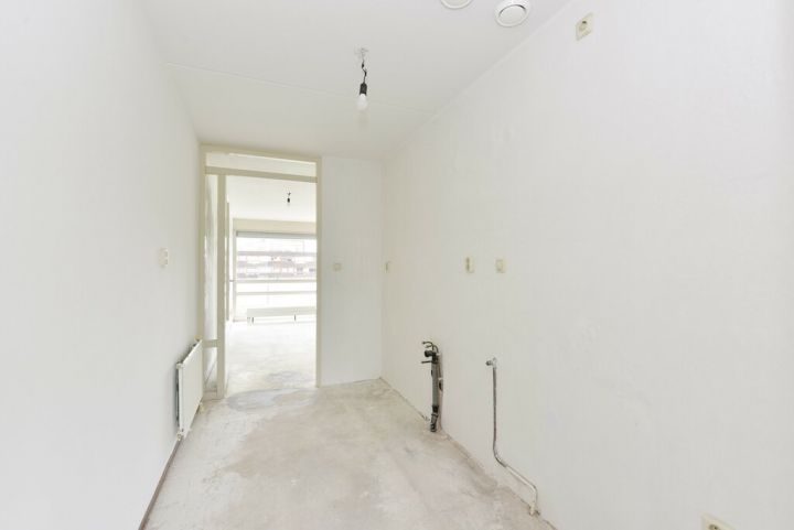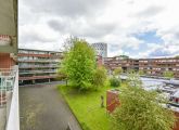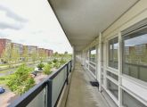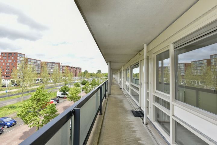Via de lift kom je op de galerij op de derde verdieping. De ruime entree biedt toegang tot alle vertrekken van de woning, hier zou ook nog een extra kamer gecreëerd kunnen worden. De woonkamer is ruim en ligt aan de balkonzijde, het ruime balkon van circa 8 m² is gericht op het oosten. De keuken is aan twee kanten te betreden en is voorzien alle nodige aansluitingen. Beide slaapkamers zijn erg ruim en tussenin bevindt zich de badkamer met een inloopdouche, wastafel en een tweede toilet aansluiting. In de hal is naast het separaat toilet ook een wasruimte aanwezig. De berging bevindt zich in onderbouw.