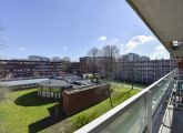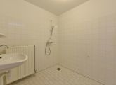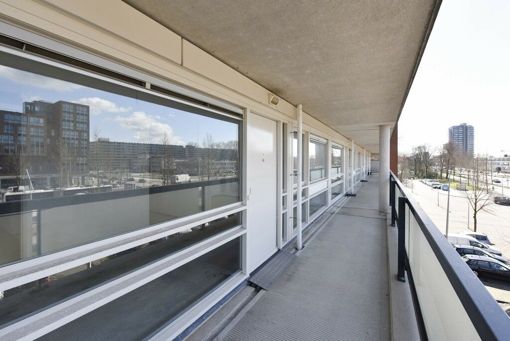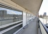 Via de lift kom je op de brede galerij op de eerste verdieping. De ruime entree biedt toegang tot alle vertrekken van de woning, hier zou ook nog een extra kamer gecreëerd kunnen worden. De woonkamer is ruim en ligt aan de balkonzijde, het ruime balkon van circa 8 m² is gericht op het oosten. De keuken is aan twee kanten te betreden en is voorzien alle nodige aansluitingen. Beide slaapkamers zijn erg ruim en tussenin bevindt zich de badkamer met een inloopdouche, wastafel en een tweede toilet. In de hal is naast het separaat toilet ook een wasruimte aanwezig. De berging bevindt zich in onderbouw.