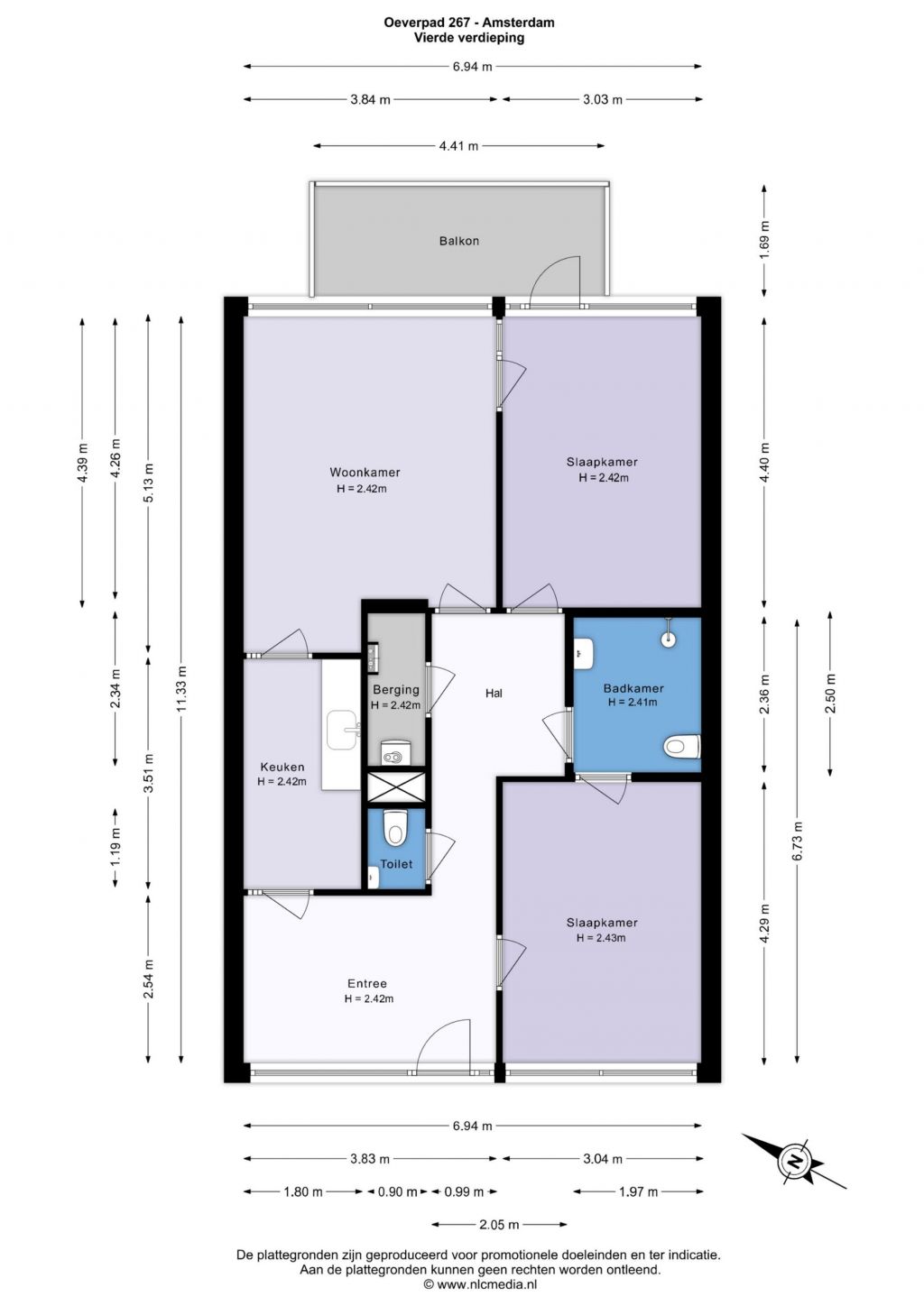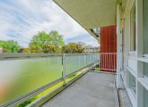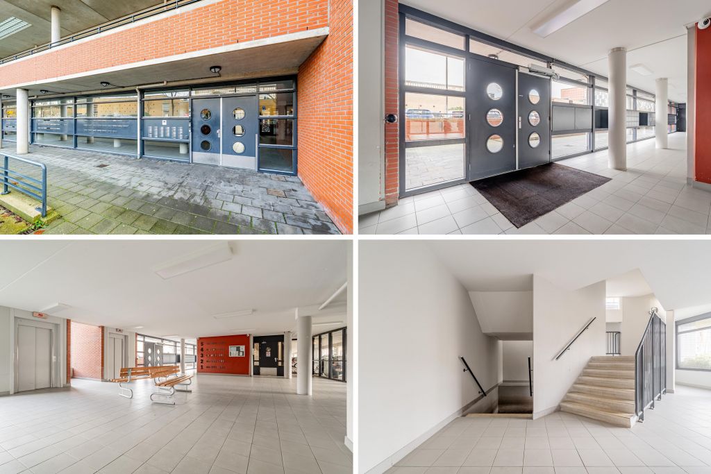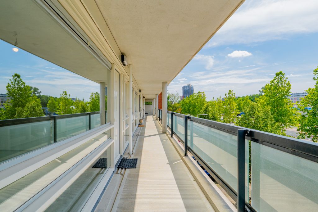 Via de lift kom je op de brede galerij op de vierde verdieping. De ruime entree biedt toegang tot alle vertrekken van de woning, je zou hier ook nog een extra kamer kunnen creëren. De woonkamer is ruim en ligt aan de balkonzijde, het ruime balkon is gericht op het noordoosten, waar je kunt genieten van de ochtendzon. De keuken is aan twee kanten te betreden en is voorzien van alle nodige aansluitingen. Beide slaapkamers zijn erg ruim en tussen de slaapkamers in bevindt zich de badkamer met een inloopdouche, wastafel en toilet. In de hal is naast het separaat toilet ook een was/stookruimte aanwezig. De ruime berging bevindt zich in onderbouw.