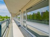 The elevator takes you to the wide gallery on the fourth floor. The spacious entrance hall provides access to all rooms of the apartment; you could even create an extra room here. The living room is spacious and faces the balcony, which also faces northeast, where you can enjoy the morning sun. The kitchen is accessible from two sides and is equipped with all necessary connections. Both bedrooms are very spacious, and between them is the bathroom with a walk-in shower, sink, and toilet. In the hallway, in addition to the separate toilet, there is also a laundry/boiler room. The spacious storage room is located in the basement.