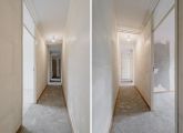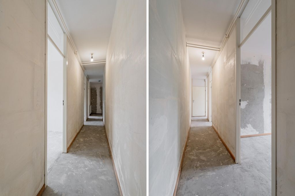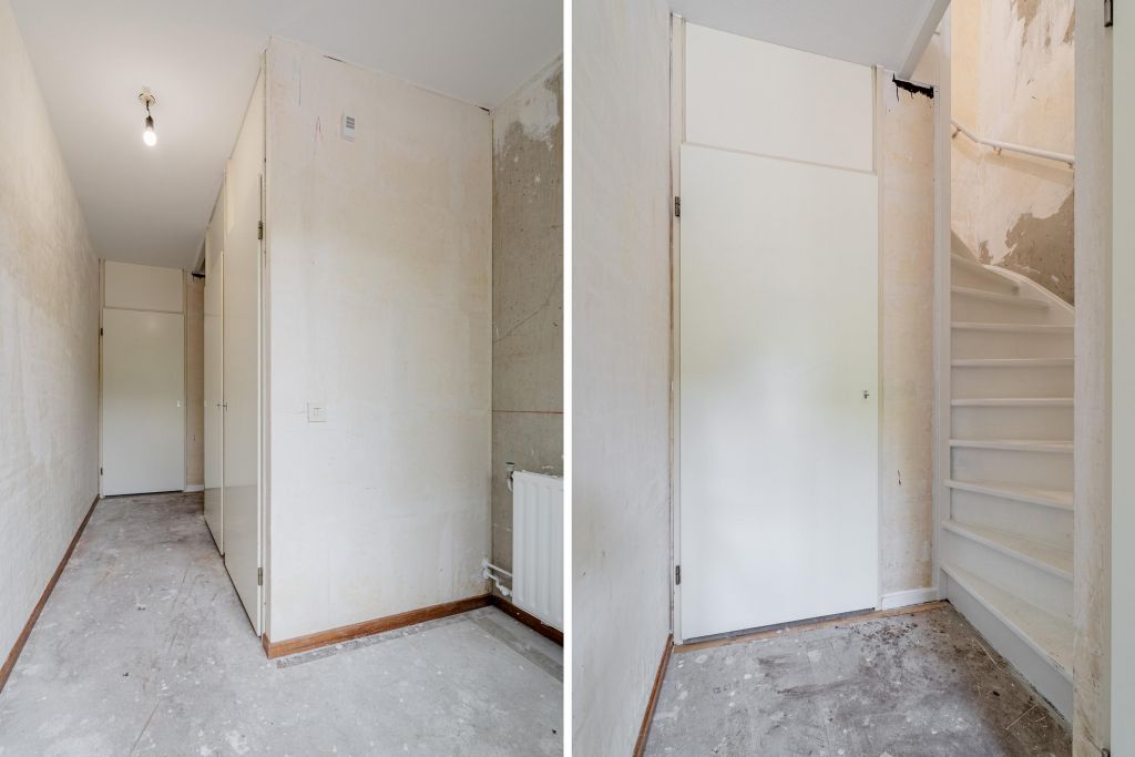 Ruime entree met: hal, meterkast, stookruimte, trapkast en de trapopgang naar de eerste verdieping.