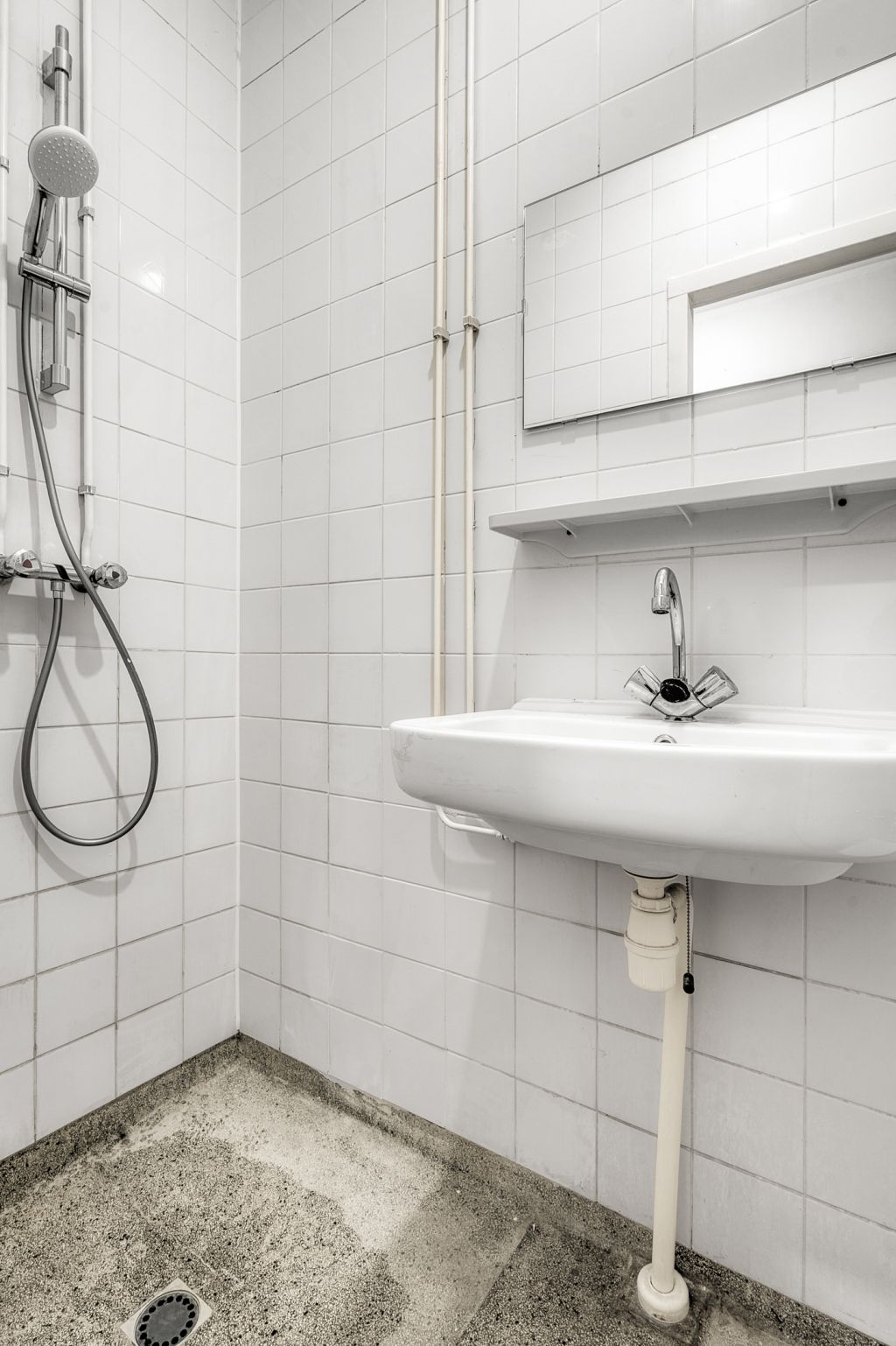 - Bathroom with shower, toilet, washbasin, and washing machine connection;