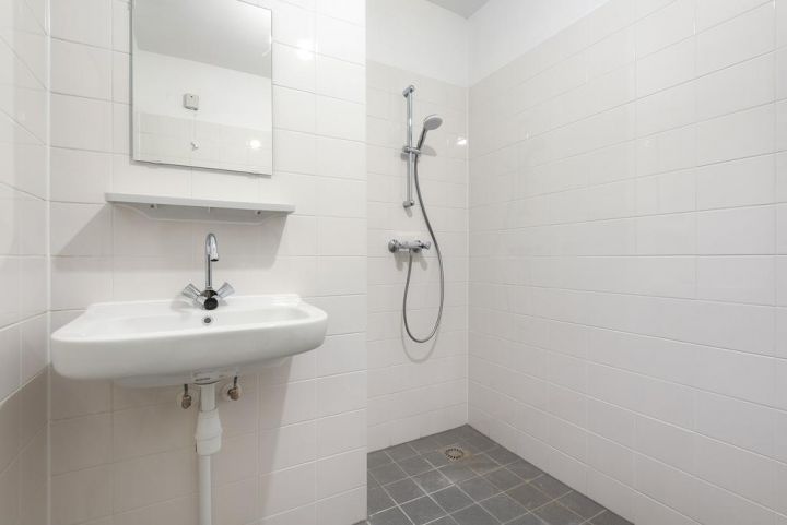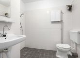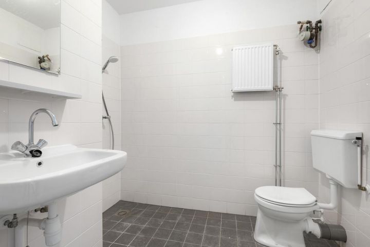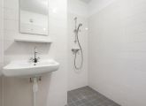 - Badkamer met douche, toilet, wastafel en wasmachine aansluiting