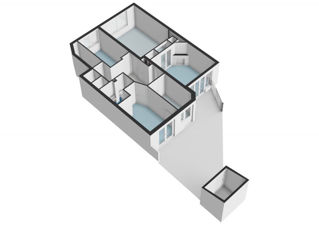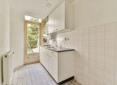 Eigen entree op de begane grond, hal met toegang tot alle vertrekken, aan de voorzijde de riante woonkamer en een slaapkamer, de badkamer is voorzien van een toilet, een douche en een wastafel, aan de achterzijde de dichte keuken en twee slaapkamers. Vanuit de slaapkamers en de keuken is er toegang tot de achtertuin.