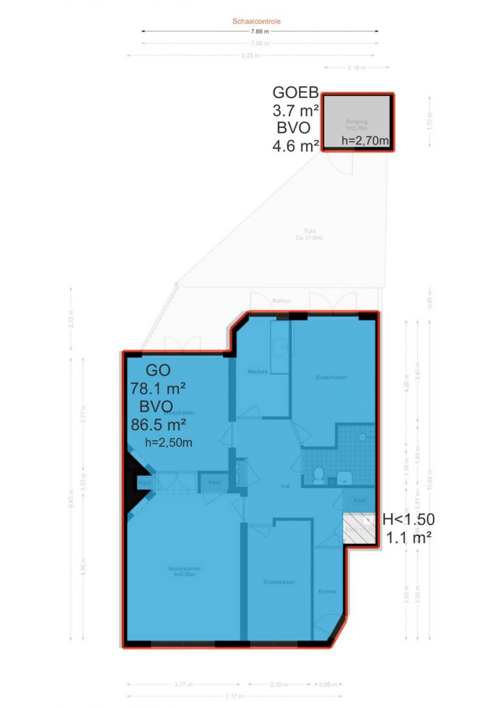 - De plattegrond betreft een indicatie van het appartement. Aan de opgegeven maten kunnen geen rechten worden ontleend.