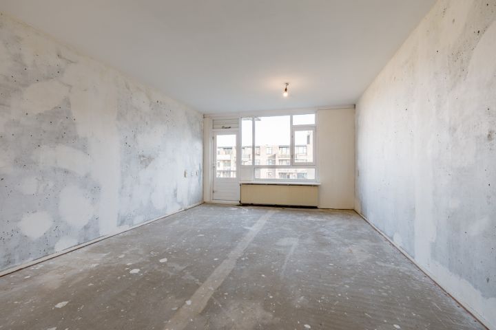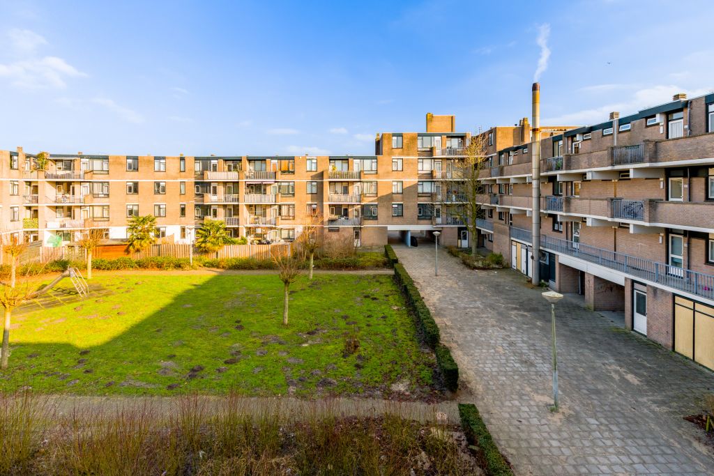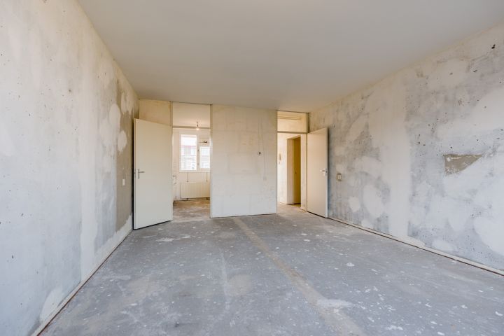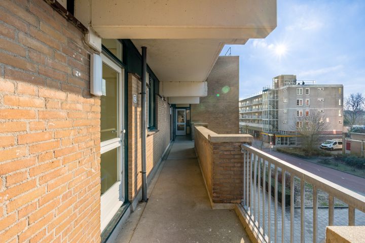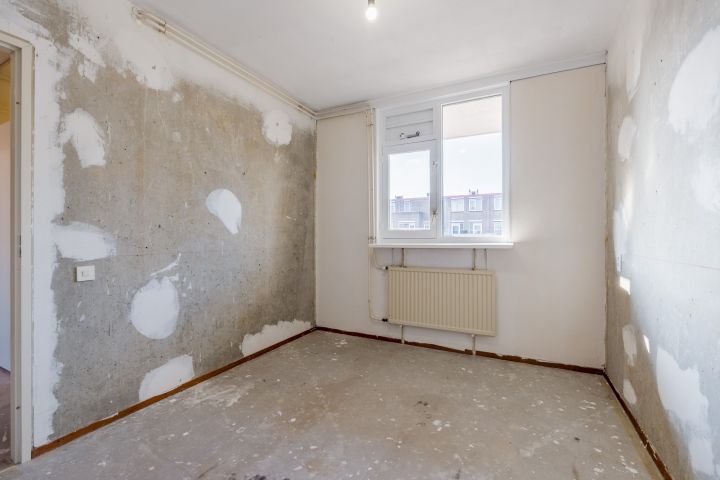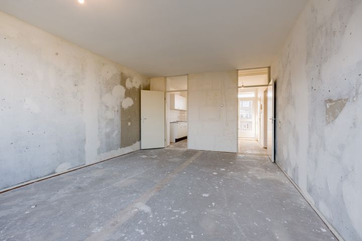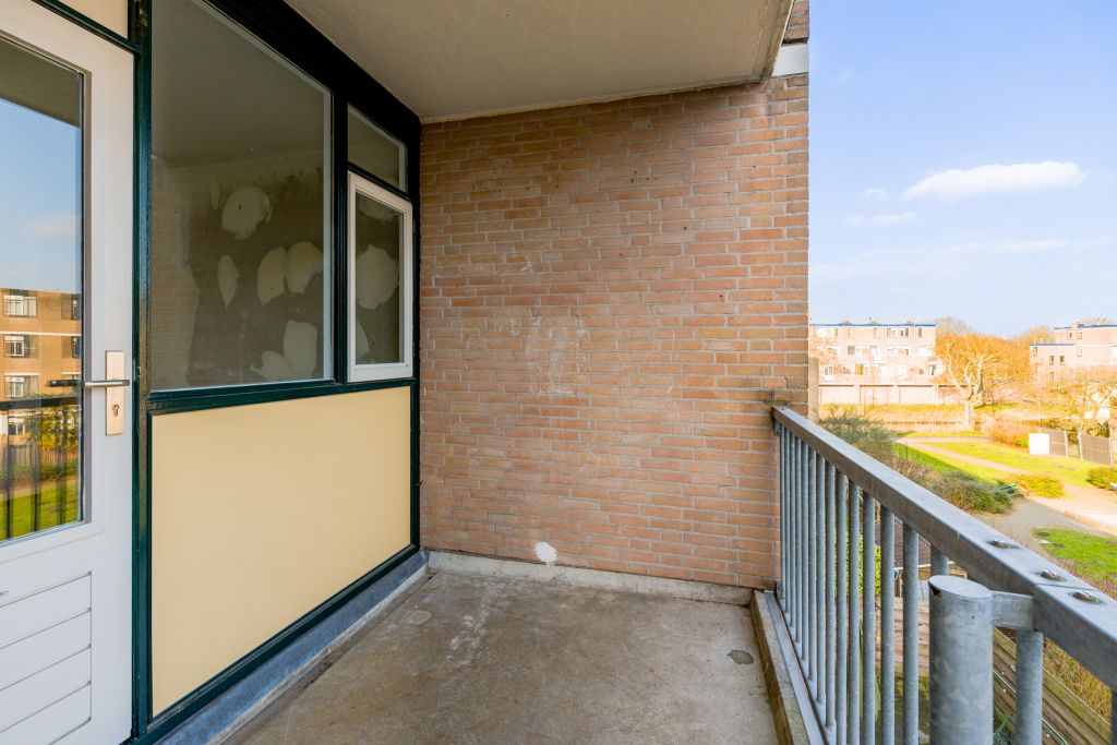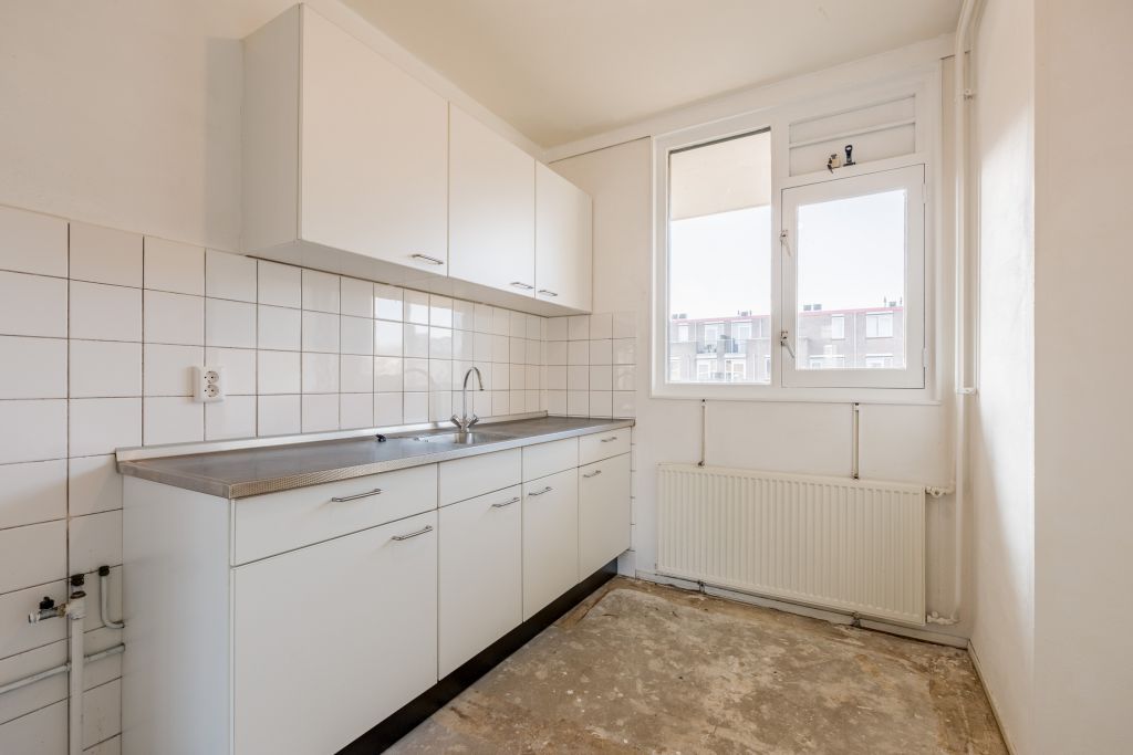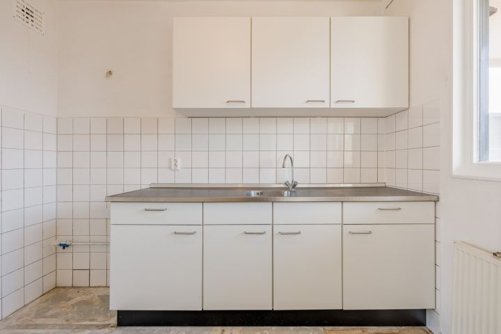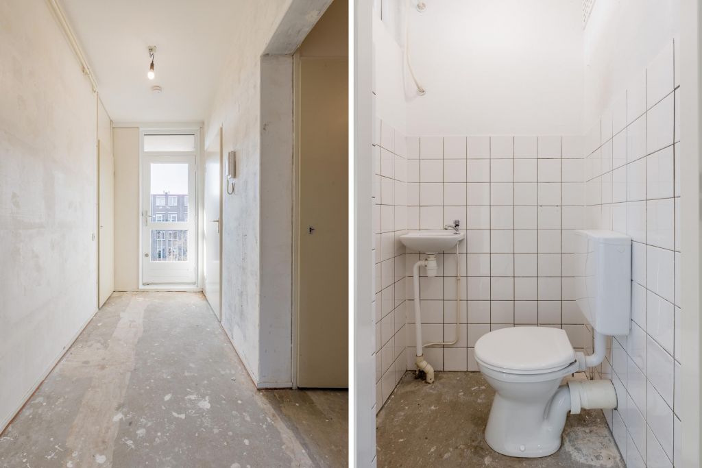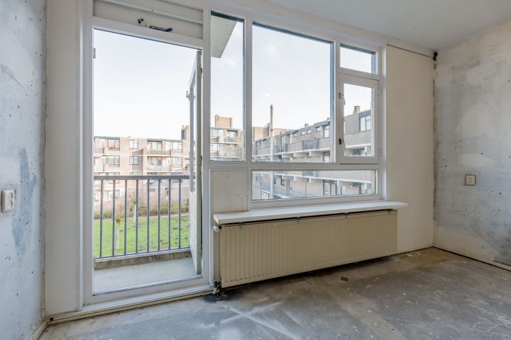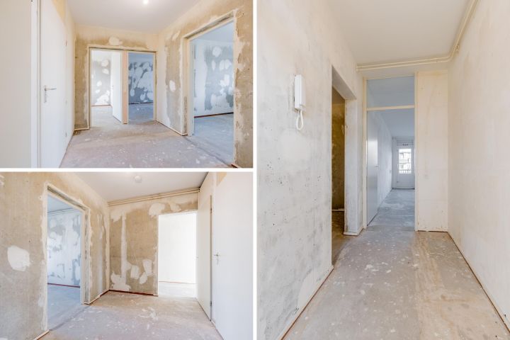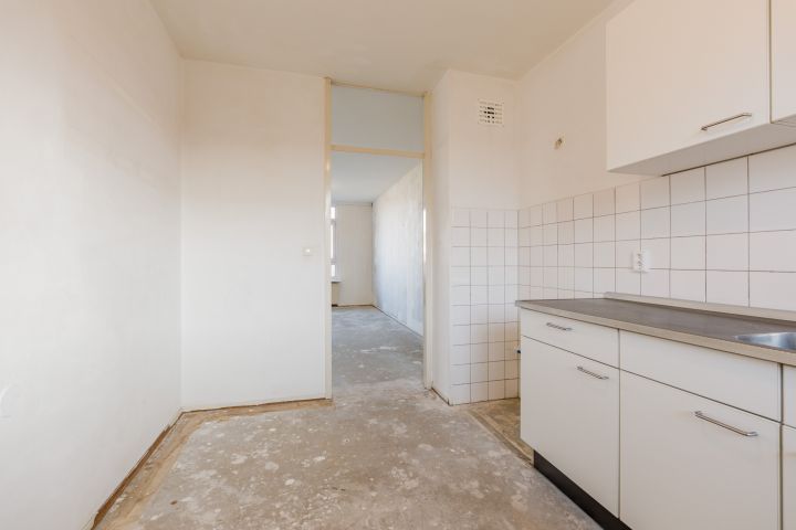 Entree woning, hal met meterkast, separaat toilet en cv-ruimte. De badkamer beschikt over een douche, wastafel en wasmachineaansluiting. De woonkamer en de eerste slaapkamer zijn gelegen aan de achterzijde en hebben beide toegang tot het balkon gelegen op het Oosten. De tweede en de derde slaapkamer zijn beiden van goed formaat. De keuken bevindt zich aan de voorzijde en is voorzien van een eenvoudig keukenblok, hier kun je de keuken van je dromen realiseren.