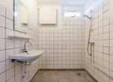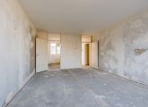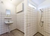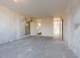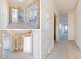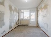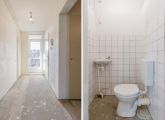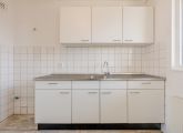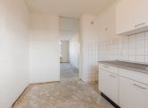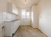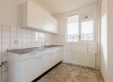 Entrance to the apartment: hallway with meter cupboard, separate toilet, and boiler room. The bathroom has a shower, sink, and washing machine connection. The living room and the first bedroom are located at the rear of the building and both have access to the east-facing balcony. The second and third bedrooms are both of good size. The kitchen is located at the front of the building and features a basic kitchen unit, allowing you to create the kitchen of your dreams.