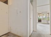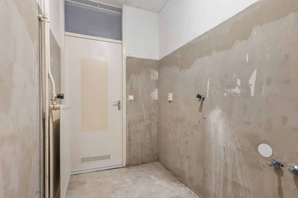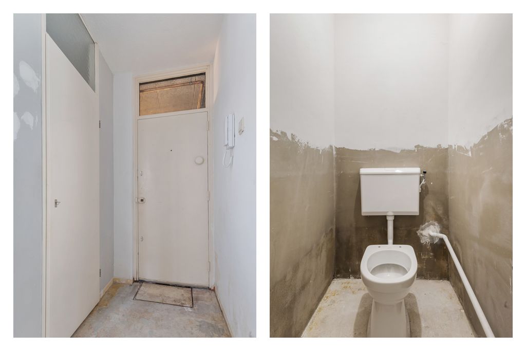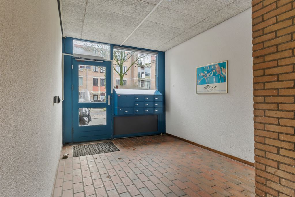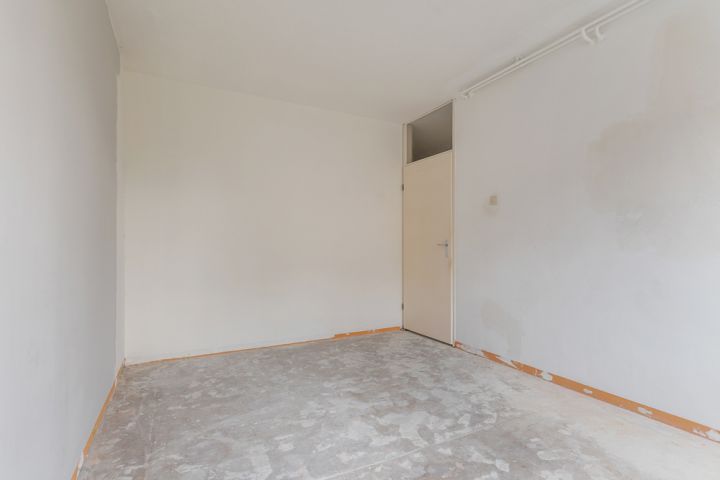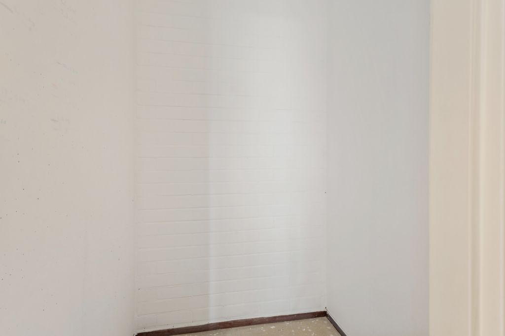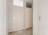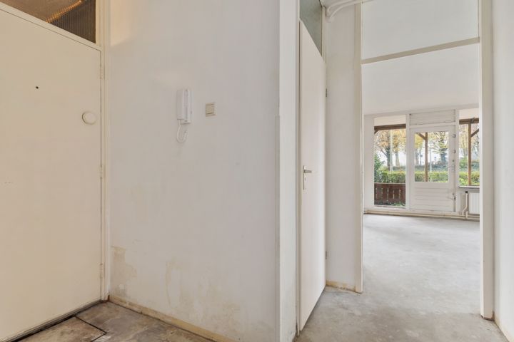 Via de gezamenlijke entree bereik je de voordeur van deze begane grondhoekwoning. Bij binnenkomst kom je in de hal, die toegang biedt tot alle vertrekken van de woning. Rechts vind je een ruime slaapkamer en een handige interne bergkast. In het midden van de woning bevindt zich de goed bemeten badkamer, terwijl het toilet separaat is gesitueerd.