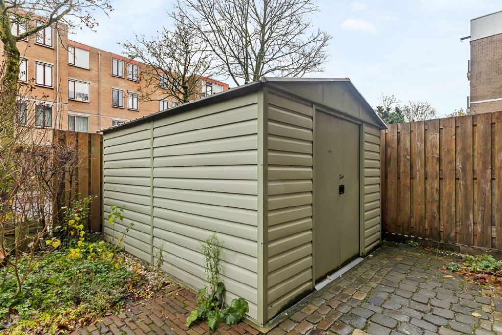 In de tuin staat een praktische berging/tuinhuis, ideaal voor fietsen en tuinspullen. Bovendien is er naast de voordeur nog een extra berging aanwezig, wat bijdraagt aan het gebruiksgemak van deze woning. Deze indeling en voorzieningen maken het geheel bijzonder praktisch, comfortabel én sfeervol.