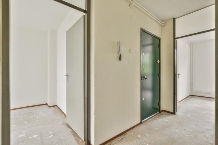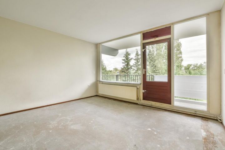 Via het trappenhuis bereik je de 2e verdieping. De hal geeft toegang tot alle vertrekken; de woonkamer, keuken, slaapkamer en badkamer. De woonkamer is aan de achterzijde van het appartement gelegen en door de grote ramen valt er veel licht naar binnen. Je stapt zo het balkon op welke aan de oostkant is gelegen met uitzicht over het groen. Ook aan deze zijde van de woning de slaapkamer, deze biedt voldoende ruimte voor een groot bed en kast. Aan de voorkant bevindt zich de keuken, deze beschikt over alle aansluitingen. In het midden van de woning de ruimte voor de badkamer. Op dit moment vindt je hier een toilet, alle aansluiten voor de badkamer zijn aanwezig.