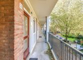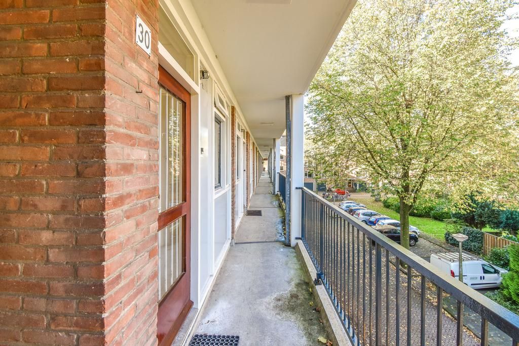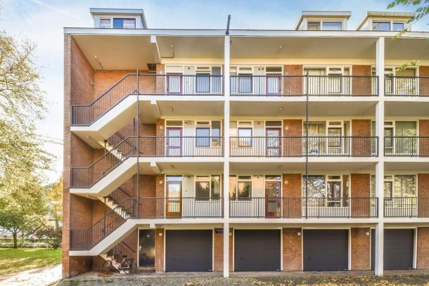 Via de galerij trappen bereik je de tweede verdieping. Het appartement is op de hoek gelegen waardoor de ramen rondom veel licht binnen laten. Bij binnenkomst in de hal heb je toegang tot de keuken, woonkamer, slaapkamer en separaat toilet. De woonkamer is gericht op het zuiden en vanuit hier heb je toegang tot het ruime en zonnige balkon. Via de woonkamer bereik je de grote slaapkamer met directe toegang tot de badkamer met douche/bad en wastafel. De keuken, aan de voorzijde, beschikt over alle nodige aansluitingen. De tweede slaapkamer is gelegen aan de zijkant van de woning. Op de begane grond is er nog een aparte berging van circa 7 m².