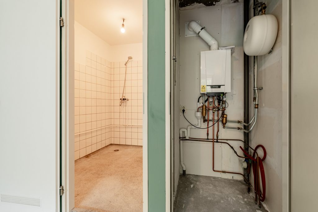 De slaapkamer ligt aan de achterzijde van de woning en heeft een prettig formaat. Vanuit hier bereik je de badkamer, die eenvoudig is uitgevoerd en naar eigen smaak gemoderniseerd kan worden. Naast de badkamer bevindt zich een separate ruimte met de cv-ketel.